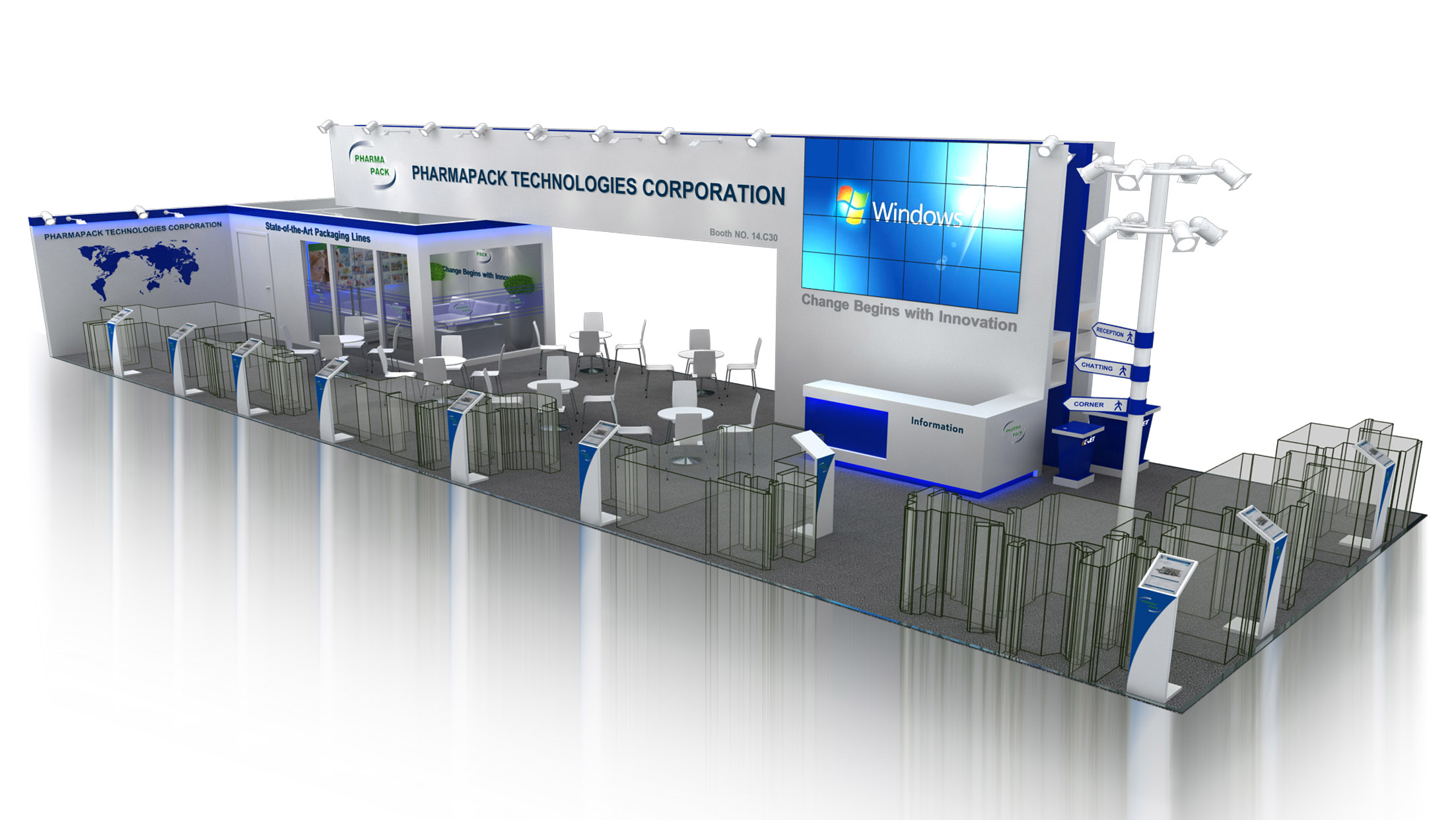 琺瑪珈集團(tuán)自2002年成立至今,致力于智能包裝及標(biāo)識設(shè)備的研發(fā)、制造、銷售及整體配套服務(wù)。公司擁有“Pharmapack”和“EC-JET”兩大品牌。 “Pharmapack”專注于智能包裝整線生產(chǎn)系統(tǒng)的研發(fā)、制造及集成,產(chǎn)品系列包括數(shù)粒智能包裝生產(chǎn)線、燈檢智能包裝生產(chǎn)線、軟包裝智能生產(chǎn)線及其它整線配套單機(jī)設(shè)備;“EC-JET”專注于標(biāo)識設(shè)備的研發(fā)、制造、銷售及服務(wù),產(chǎn)品系列包括小字符噴碼機(jī)、大字符噴碼機(jī)、激光噴碼機(jī)、高解析噴碼機(jī)及相關(guān)工業(yè)耗材。公司的產(chǎn)品廣泛應(yīng)用于制藥、食品、飲料、糖果、化妝品及電子產(chǎn)品等行業(yè)。這次參展的琺瑪珈用流暢優(yōu)美的展臺設(shè)計線條吸引了眾多觀眾駐足,中勵展覽資深展臺設(shè)計師為其打造的科技藍(lán)色調(diào),也讓琺瑪珈的產(chǎn)品更顯科技感和專業(yè)度。