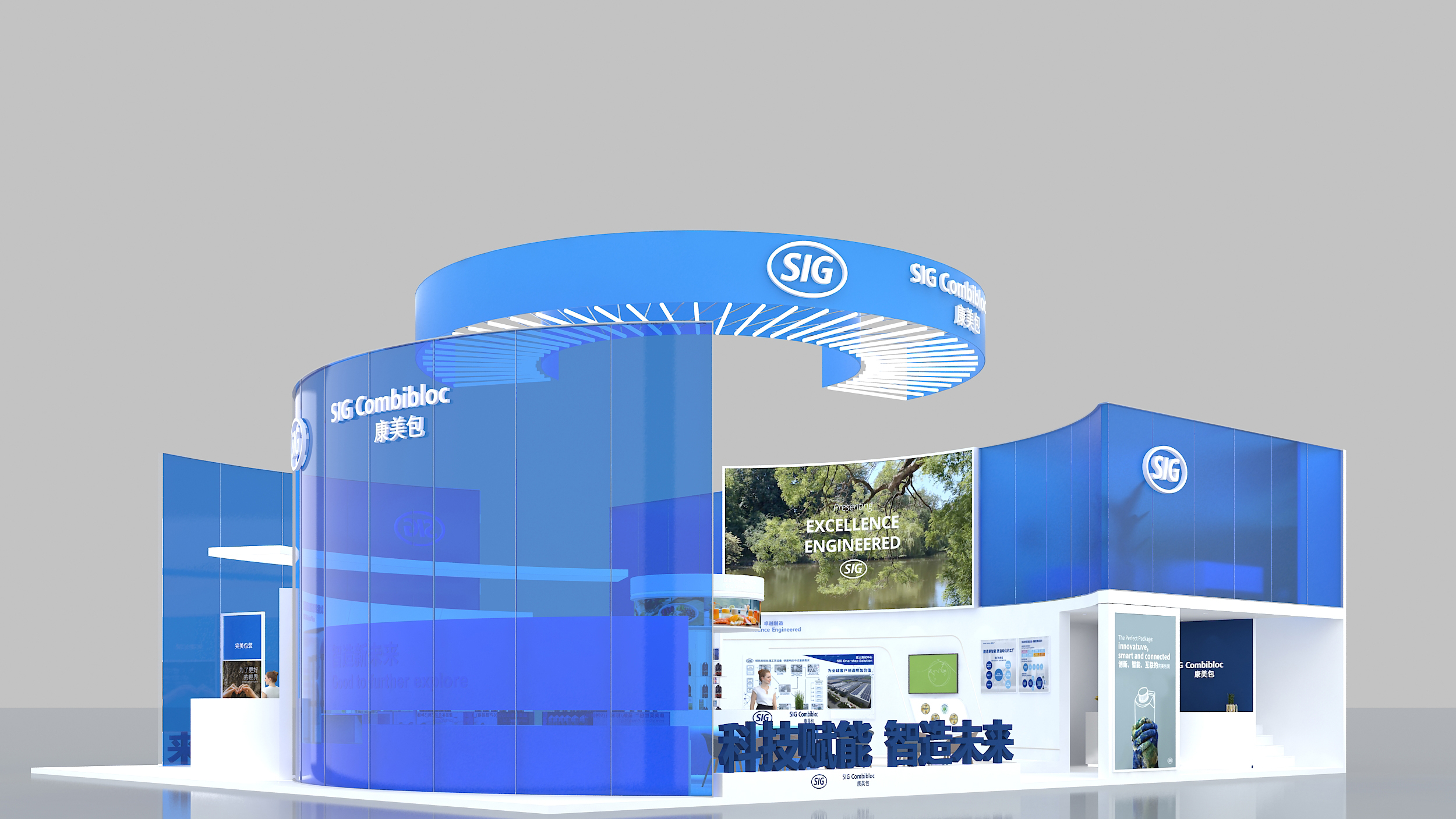 展臺(tái)的外墻做的真的很通透呢,這種半透明的效果比普通墻面效果好多了