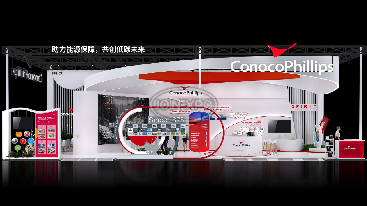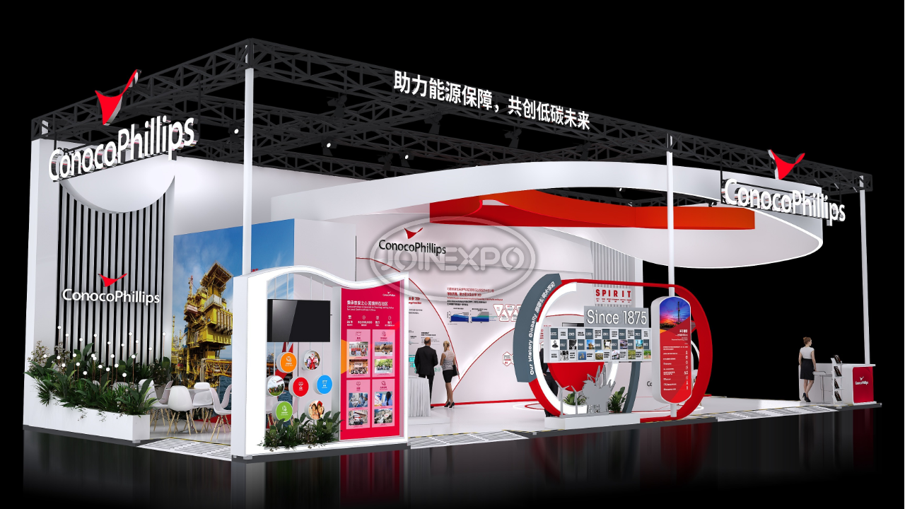 自20世紀80年代以來,康菲一直是中國忠誠的合作伙伴,也是中國上游油氣行業(yè)最大的外商投資者之一。在過去近40年中,康菲將在中國的業(yè)務(wù)范圍擴大到了各個領(lǐng)域,包括石油、天然氣勘探和生產(chǎn)、液化天然氣供應(yīng)和其他相關(guān)業(yè)務(wù)。目前,康菲在北京和天津(塘沽)兩地設(shè)有辦公室。康菲承諾以負責任的態(tài)度參與能源開發(fā)及生產(chǎn),關(guān)注作業(yè)所在地區(qū)的長遠發(fā)展,為利益相關(guān)方創(chuàng)造長期價值??捣浦铝τ诼男衅髽I(yè)社會責任,以當下亟需解決的民生問題為本,通過長遠并創(chuàng)新的戰(zhàn)略規(guī)劃,希望長期改善當?shù)鼐用竦纳?。中勵展覽為康菲石油設(shè)計搭建的展臺用流暢的線條和簡潔的色彩搭配,構(gòu)筑出讓人賞心悅目的參觀展臺。