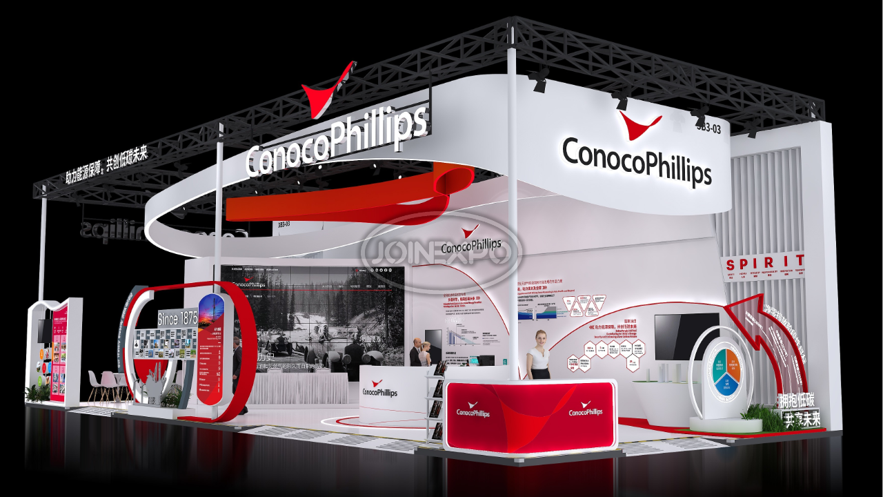 自20世紀80年代以來,康菲一直是中國忠誠的合作伙伴,也是中國上游油氣行業(yè)最大的外商投資者之一。在過去近40年中,康菲將在中國的業(yè)務(wù)范圍擴大到了各個領(lǐng)域,包括石油、天然氣勘探和生產(chǎn)、液化天然氣供應(yīng)和其他相關(guān)業(yè)務(wù)。目前,康菲在北京和天津(塘沽)兩地設(shè)有辦公室。康菲承諾以負責任的態(tài)度參與能源開發(fā)及生產(chǎn),關(guān)注作業(yè)所在地區(qū)的長遠發(fā)展,為利益相關(guān)方創(chuàng)造長期價值??捣浦铝τ诼男衅髽I(yè)社會責任,以當下亟需解決的民生問題為本,通過長遠并創(chuàng)新的戰(zhàn)略規(guī)劃,希望長期改善當?shù)鼐用竦纳?。中勵展覽為康菲石油設(shè)計搭建的展臺用流暢的線條和簡潔的色彩搭配,構(gòu)筑出讓人賞心悅目的參觀展臺。